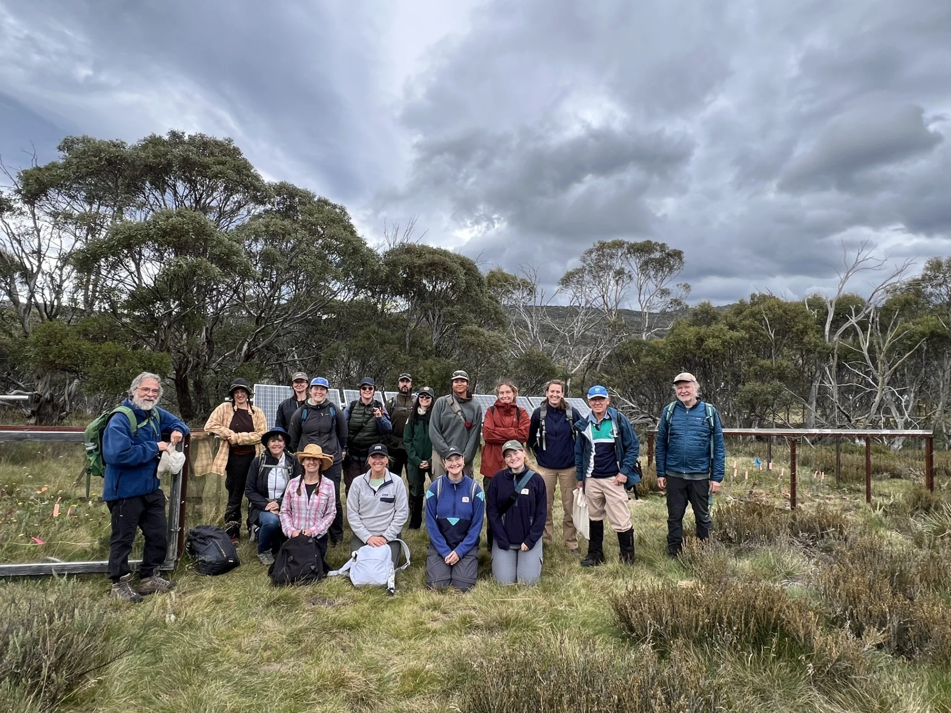 Snow Gum Summit 2026: The second Snow Gum Summit was held in Jindabyne on the 14–15 March, 2026. The Summit was convened by Friends of the Earth Melbourne and brought together researchers, land managers, Traditional Owners, and community groups from across the Australian Alps to address the escalating threats to snow gum woodlands, principally climate-change-driven dieback from native longhorn beetles, and increasingly intense bushfire. Attendees of the Summit visited the AMRF Aqueduct site near Perisher Valley. The walk was led by Professor Adrienne Nicotra (ANU/AMRF Director) and gave attendees a firsthand look at the monitoring and experimental infrastructure at the site.