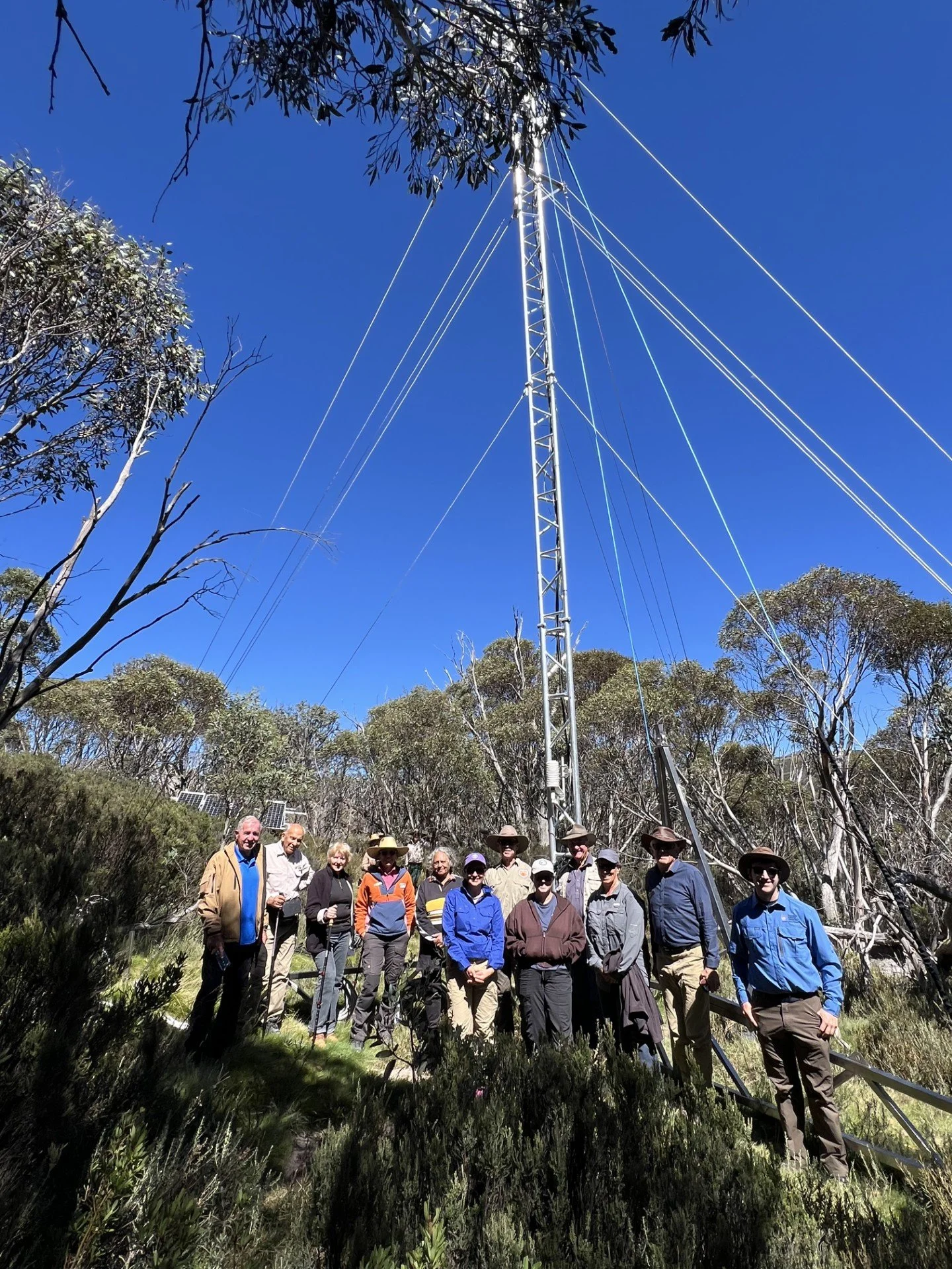 NWPS Regional Advisory Council Visit: The NSW National Parks and Wildlife Service Southern Ranges Regional Advisory Committee (RAC), a statutory body that advises the NSW Minister for the Environment on park management, visited AMRF sites earlier this year. This visit follows a presentation given to the committee in 2025 by Professor Adrienne Nicotra (ANU/AMRF Director) which introduced Committee members to AMRF's mission and capabilities. The site visit gave committee members a firsthand look at the infrastructure and the breadth of research it supports, including the FutureClim climate-manipulation system and a common-garden snow gum transplant experiment that will inform conservation decisions around snow gum dieback risk, recovery potential, and whether other species can offset canopy lost to dieback. Committee members were impressed by the scope and relevance of the work underway and were very keen to be able to access the research findings as they emerge. There was strong interest in seeing continued output from facilities like AMRF and the broader TERN network shaped to support action by government entities, giving bodies like the RAC and the Minister's office the evidence base they need to make decisions about how these landscapes are managed.